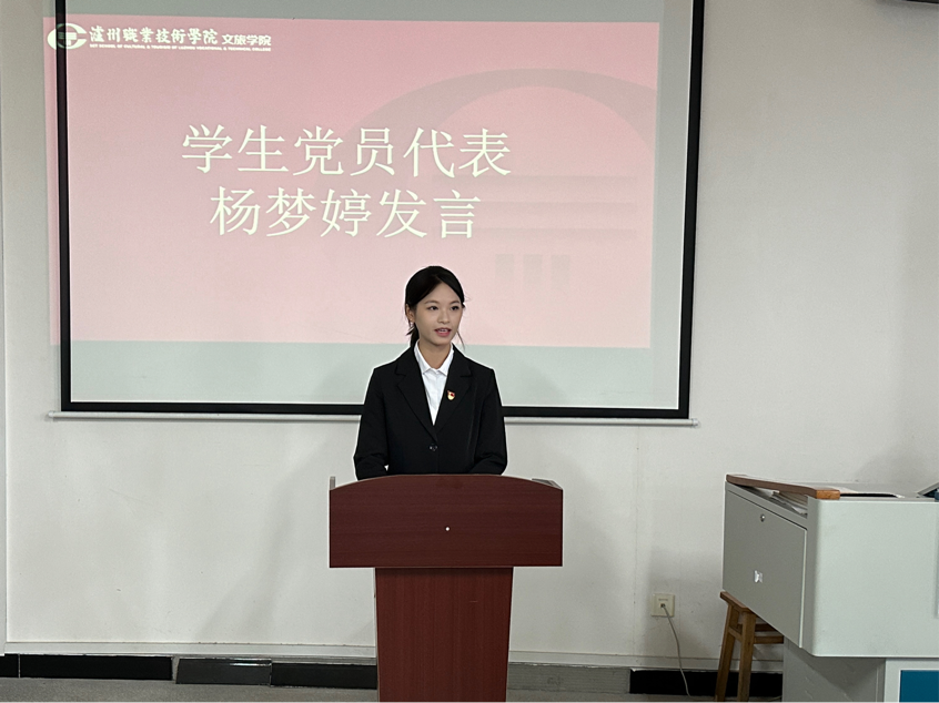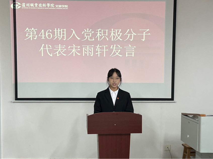 优秀学生党员代表杨梦婷和第46期入党积极分子代表宋雨轩依次上台发言,分享了自己的学习心得和体会,并表示同学们应当坚定自己的政治立场,不断提升自己的综合素质,努力奋斗。