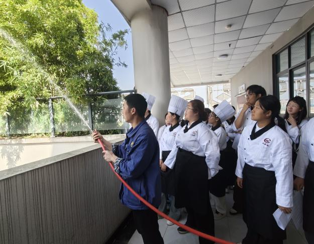 烹饪实训室明火作业频繁、燃气与大功率电器集中,是校园消防安全的重点管控区域。本次演练紧扣烹饪实训场景,以“理论讲解+实景模拟+实操教学”的形式,让师生们在沉浸式体验中掌握消防技能。